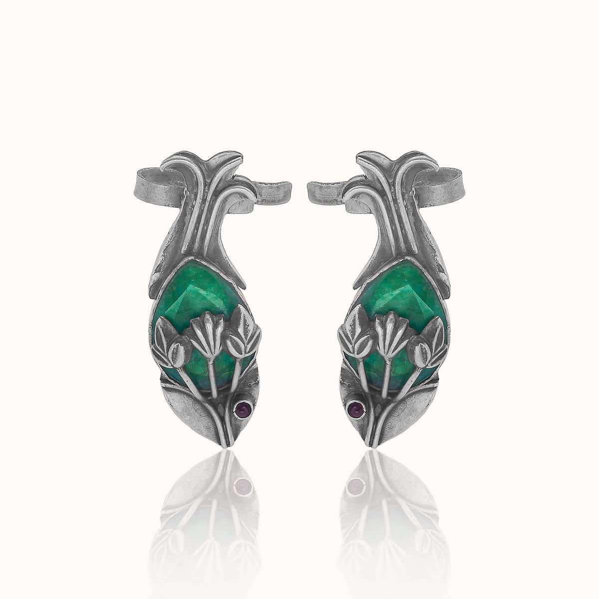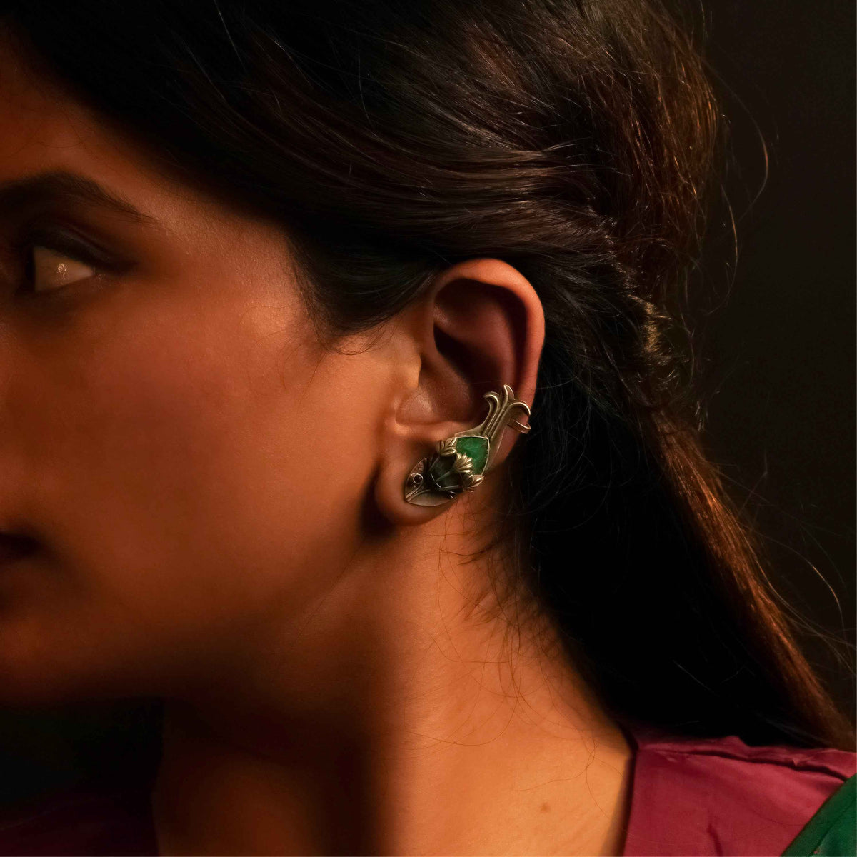 This Noorish 925 silver ear cuff features a charming fish motif adorned with vibrant green stone accents. This piece combines delicate detailing with a touch of whimsical sophistication, allowing you to dive into elegance.
