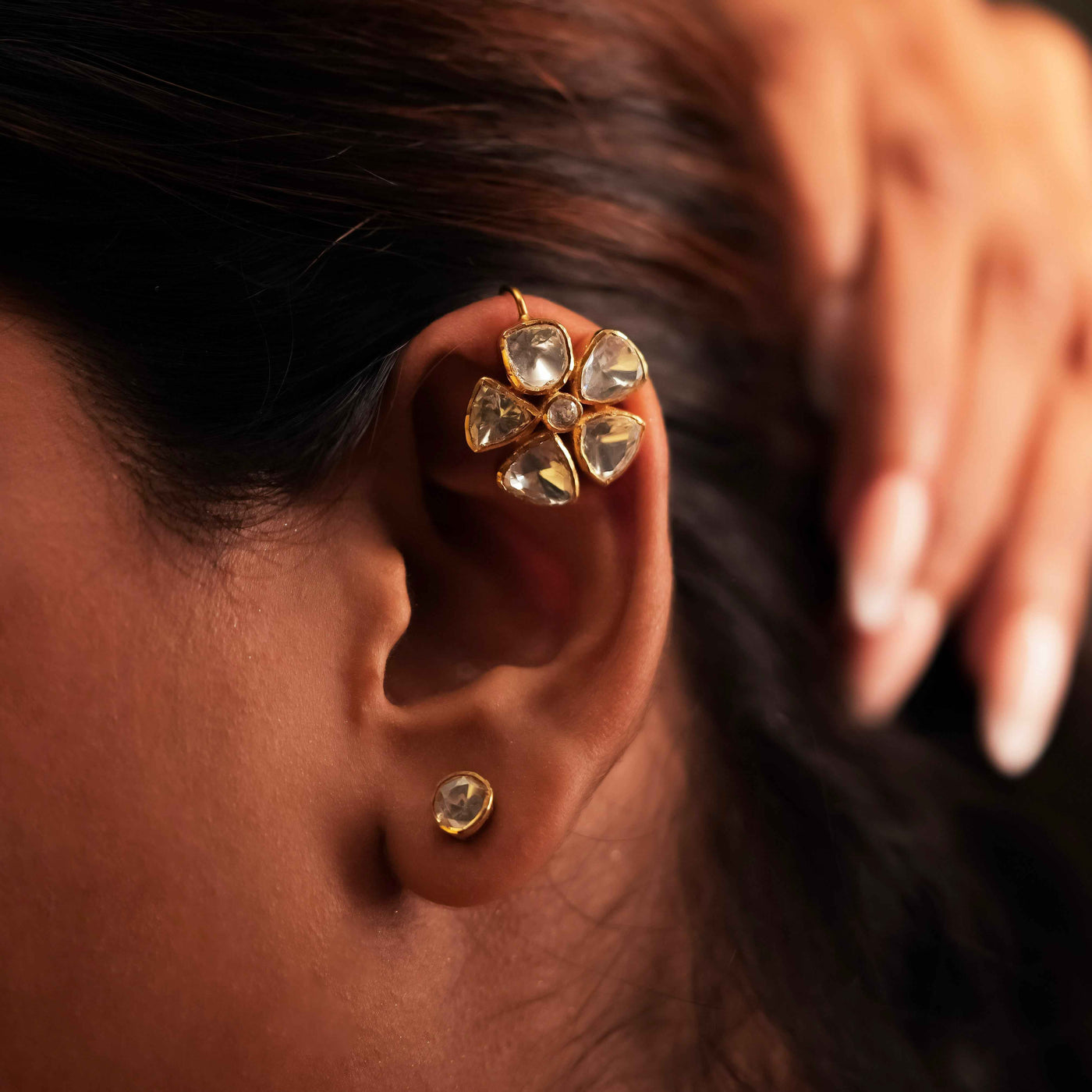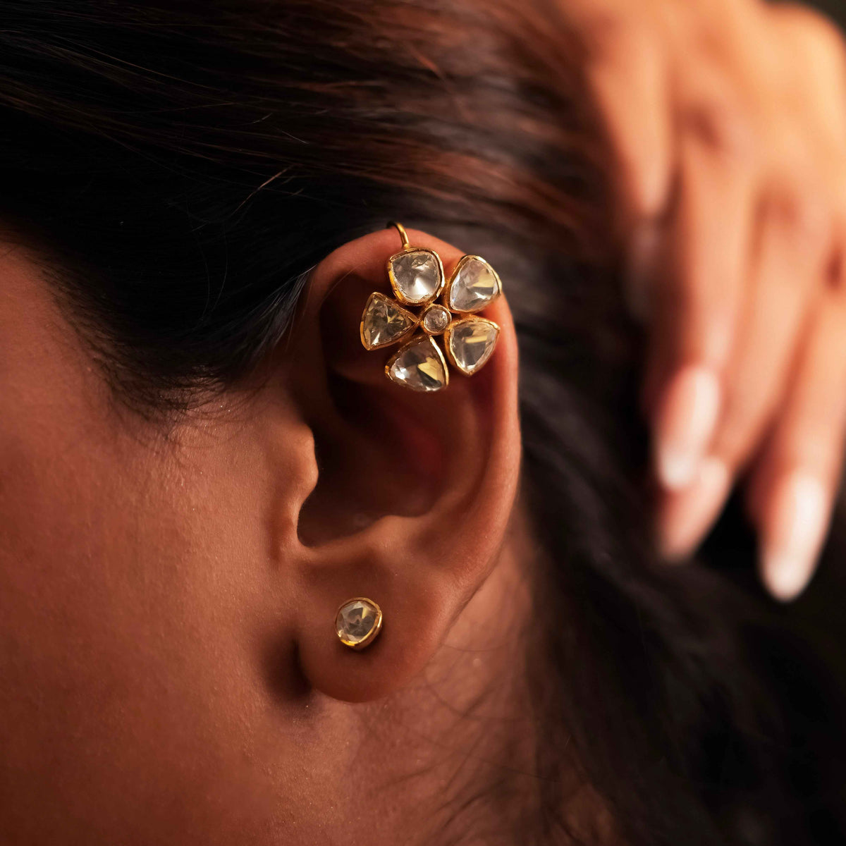 Perfect for weddings, festivals, and traditional ceremonies, this Noorish 22k gold plated 925 Silver ear cuff is also a great statement piece for cocktail parties or family gatherings, and can be worn for a casual brunch or date night to add a touch of glamour to your ensemble.
