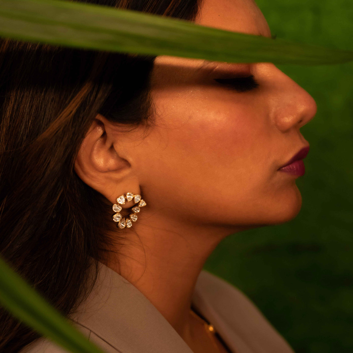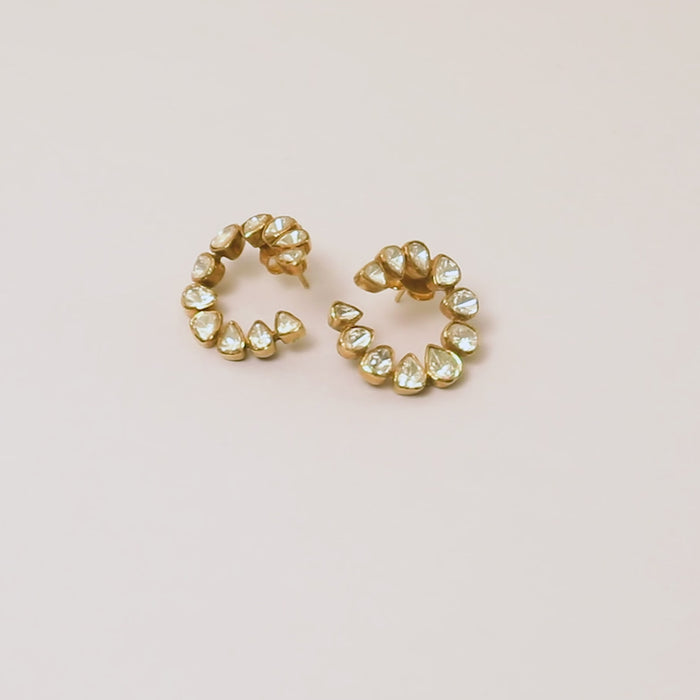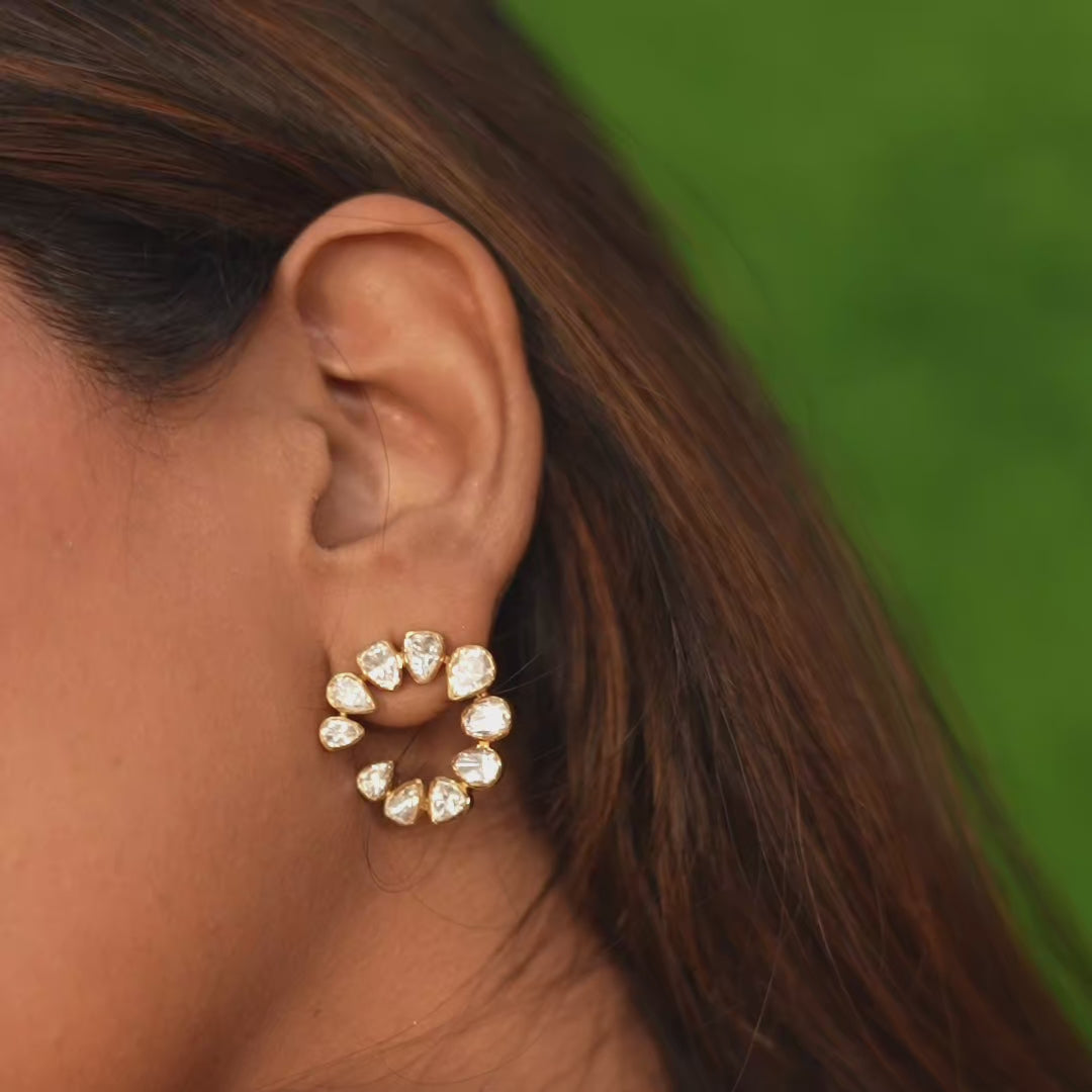 Showcasing a circular arrangement of shimmering open-cut polki stones, these 22k gold plated Noorish 925 silver earrings earrings offer a radiant and versatile design that suits any occasion.